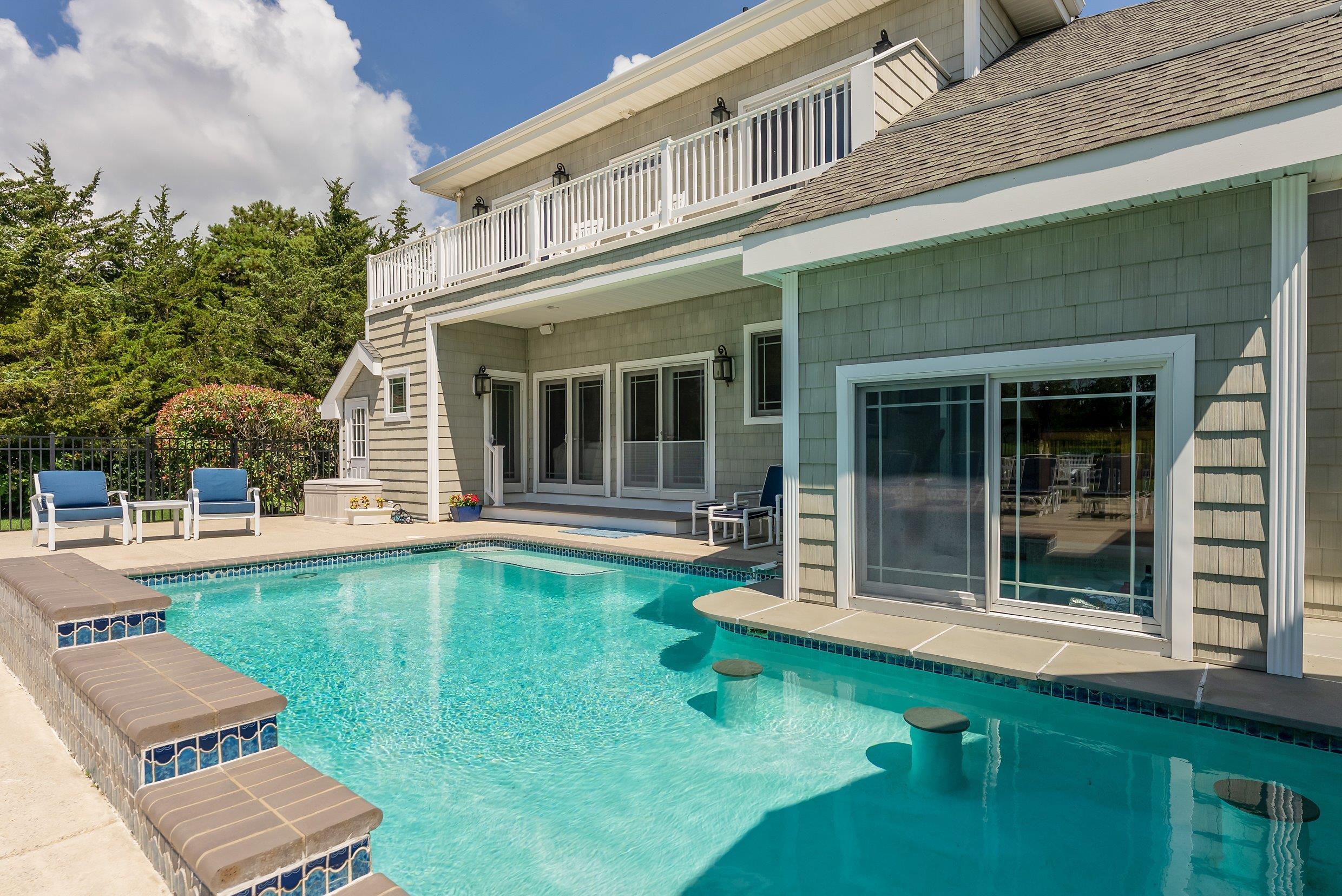 Welcome to 17 Eagles Way An Extraordinary Estate next to Union League National, Just Minutes from Avalon. Discover a truly exceptional residence in one of Cape May County s most prestigious neighborhoods where luxury, elegance, and craftsmanship come together in spectacular fashion. Set on a full acre of meticulously manicured grounds, this magnificent home makes a commanding first impression with its grand scale, refined design, and flawless landscaping. Nestled on a quiet street surrounded by other stately homes, 17 Eagles Way offers the perfect blend of privacy, prestige, and year-round convenience. Situated directly next to Union League National Golf Course and just five short minutes to the beaches of Avalon, this is more than a home it s a lifestyle. From the moment you arrive, the curb appeal is undeniable. A sweeping circular driveway leads to a two-and-a-half-car garage and a stately porte-cochere for convenient arrivals and departures. Nearly every inch of this property is impeccably maintained. Step through the front door into a grand foyer that introduces the home s impressive scale. The spacious living room offers direct access to the spectacular rear yard and pool area. Just off the living room, a sunken bar with dual pass-through windows connects to a five-seat swim-up bar in the resort-style inground pool perfect for summer entertaining. To the right of the foyer, the formal dining room features hardwood floors, oversized windows, and room to host everything from Thanksgiving dinners to formal gatherings. To the left, you ll find a generously sized guest bedroom and one of the home s four full bathrooms. The Master suite is a sanctuary unto itself, complete with hardwood flooring, a dual-sided natural gas fireplace, private access to the pool deck, and a walk-in closet with custom built-ins. The spa-like master bath is finished in ceramic tile and includes a massive walk-in shower with dual rain heads, six body sprays, seamless glass doors, and a luxurious jetted tub. The heart of the home is a massive chef s kitchen outfitted with cherry cabinetry, stainless steel appliances, and a six-burner Jenair natural gas range. A breakfast nook overlooks the backyard oasis, while the adjacent family room includes the first of two powder rooms with an exterior entrance ideal for beachgoers or pool guests. Upstairs, a second living area offers the perfect hangout space for kids or guests. Two bedrooms share a Jack-and-Jill bathroom and open to a private second-floor deck with sweeping golf course views. A third upstairs bedroom includes an en-suite bath accessible from the hallway or sitting area. Back on the main level, the large laundry room leads to the oversized garage and a finished basement that elevates the home s entertainment potential. The custom movie theater includes six leather recliners (with personal trays and near full-recline), drink warmers and coolers, and a professional projection screen for the ultimate viewing experience. Also downstairs a private powder room with easy access to the pool, an operational cedar sauna, a potential gym or flex room, and an office. Homes of this caliber rarely hit the market especially ones offering direct golf course views and such close proximity to the finest beaches on the New Jersey shore. Adjacent 1 acre lot is also available for sale. 19 Eagles way can be added to this property to create a one-of-a-kind estate. Don t miss your chance to own a legacy property just five minutes from Avalon one of the most coveted beach towns on the East Coast.